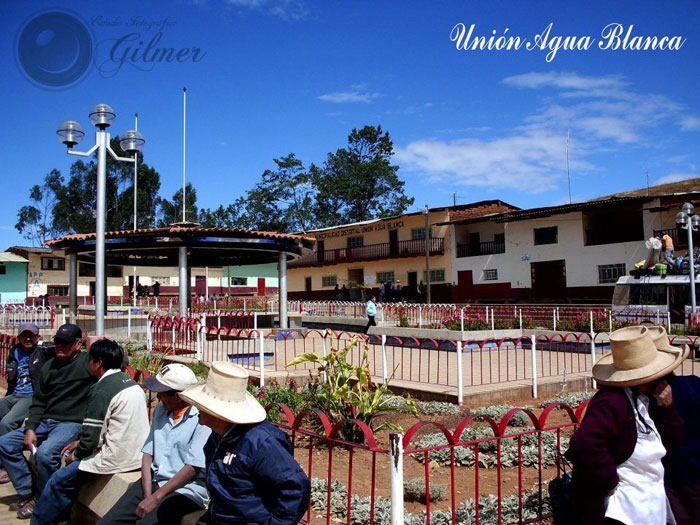 El distrito de Unión Agua Blanca fue creado por Ley 23936, del 27 de septiembre de 1984, la misma que le fija sus linderos. Su capital es el centro poblado de Agua Blanca, situada a 2,900 m s. n. m.